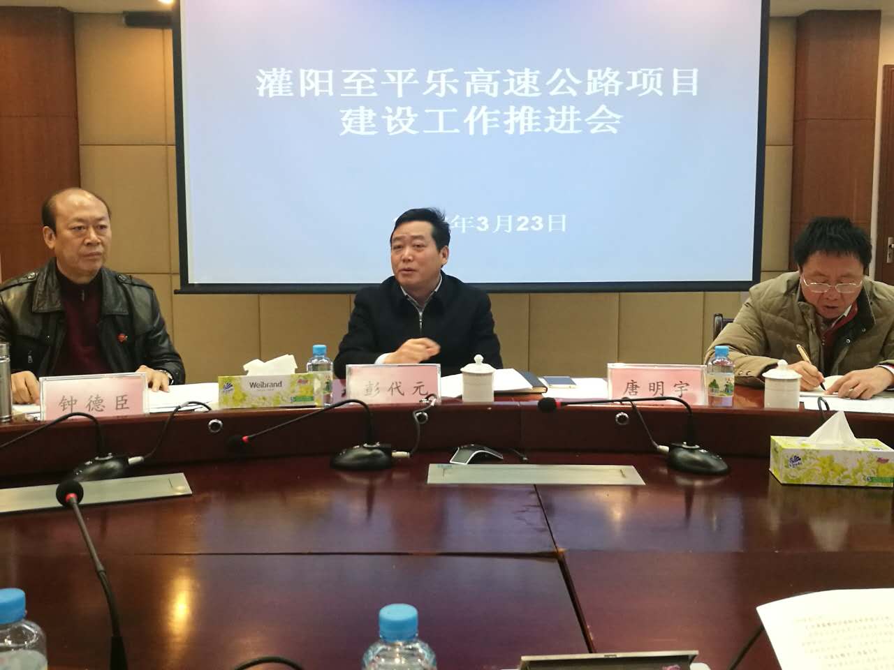 为加快灌阳至平乐高速公路项目前期工作, 3月23日上午,桂林市人民政府召开灌阳至平乐高速公路项目建设推进工作会,桂林市政府副市长彭代元等领导出席会议,要求有关各方主动作为,竭尽全力,实现项目在今年早日开工建设。