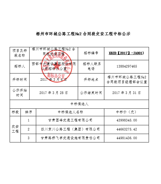 梧州市环城公路工程№2合同段景观绿化工程中标公示