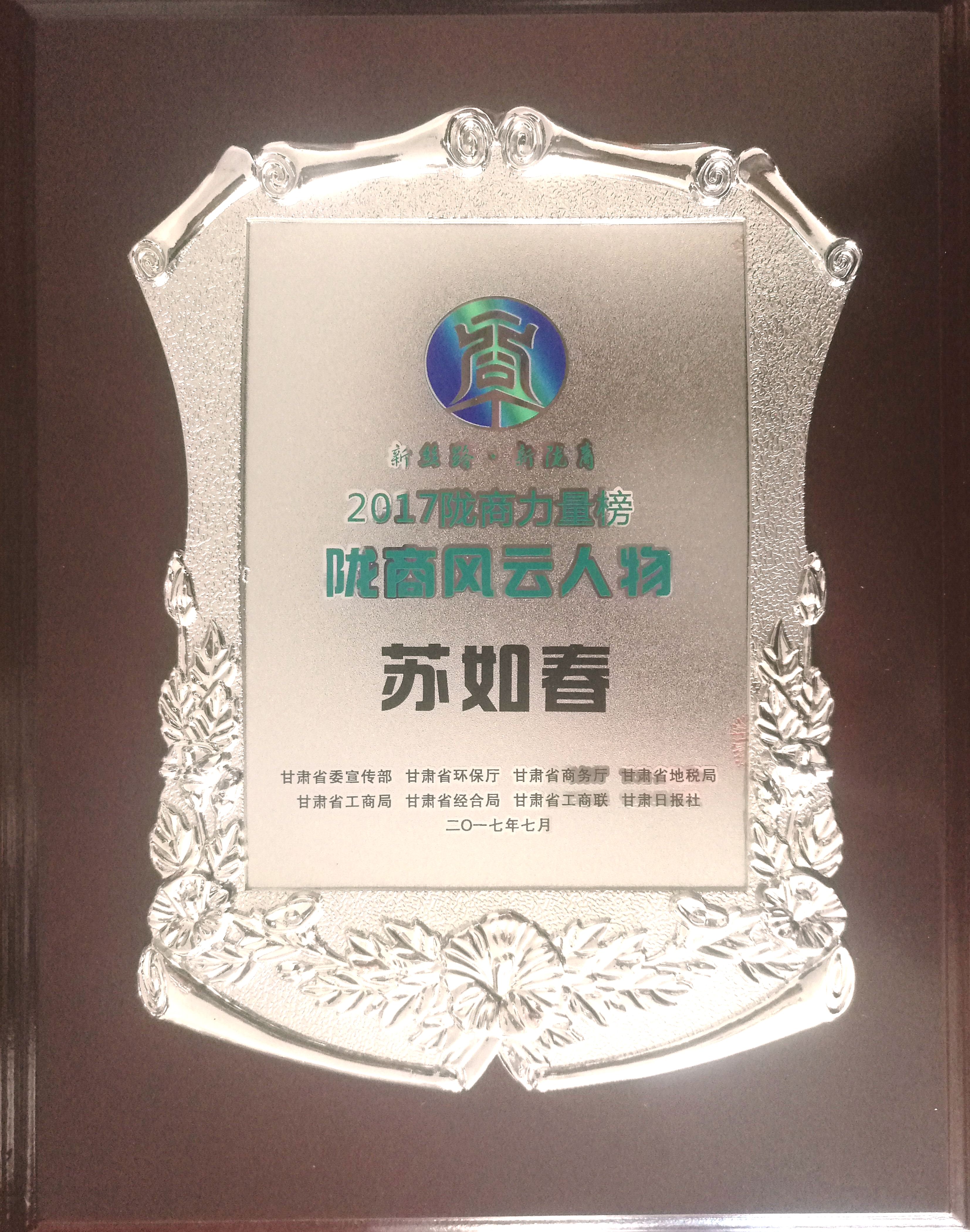论坛上宣读了“新丝路·新陇商”——2017陇商力量榜“陇商风云人物”。西部中大建设集团股份有限公司董事长苏如春凭借其个人及带领的企业近年来在“建设甘肃、发展甘肃、回报甘肃”以及为甘肃经济发展做出的杰出贡献和出色表现,受到甘肃省各级政府的高度肯定和认同,通过参与各方严格按照推选办法遴选推荐,苏如春董事长荣获了该荣誉称号。